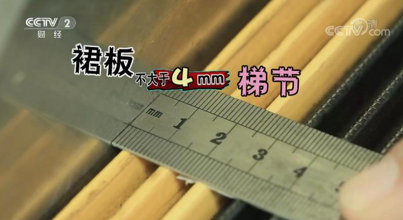 专家指出,电动扶梯的台阶和两侧墙壁之间,会有一定的间隙,但是不会大于4毫米。可这样小的间隙也有可能使衣服或者鞋带夹入,造成伤害。所以从2011年开始,国家强制要求自动扶梯的电梯梯级和围裙板之间必须安装防护装置。而现在围裙板上的毛刷就是这个防夹装置。它的用意是提醒乘客:脚如果碰到毛刷,需要远离一点才能保证安全。